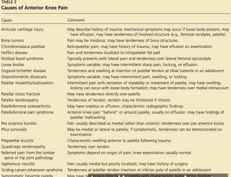 앞 무릎 속 통증이란?